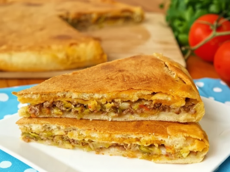 Rich and Delicious Filling: Between the two layers of dough lies a filling typically made of ground beef sautéed with plenty of onions and enriched with spices. In some regional recipes, a bit of tomato or pepper paste may also be added to the filling. This filling gives the pastry its satisfying and memorable taste.
