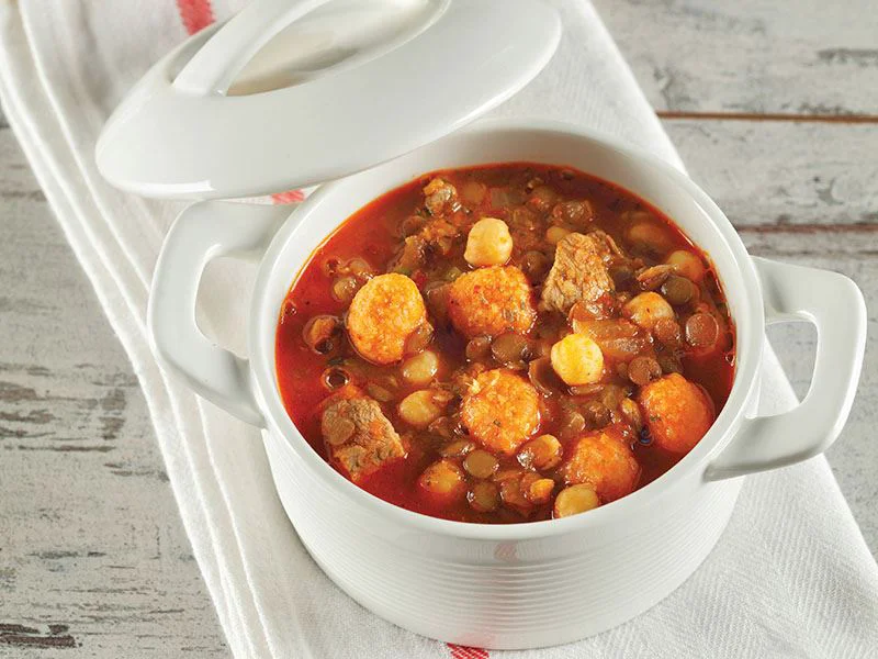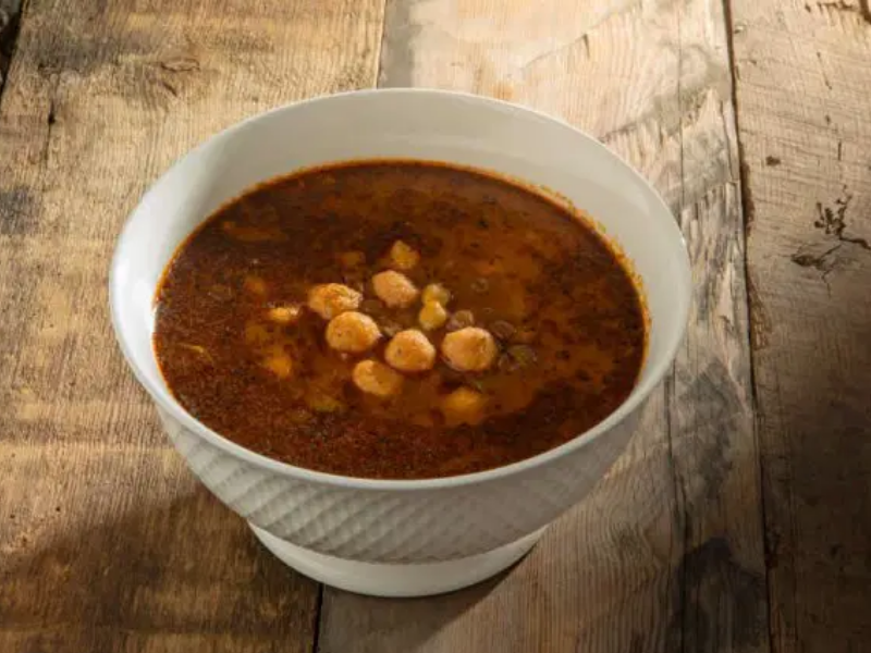 The main ingredients include chickpeas, green lentils, and handmade dough balls, all slowly cooked in meat or bone broth to create a rich and satisfying flavor. A butter and tomato paste sauce poured over the soup gives it its signature aroma and depth.